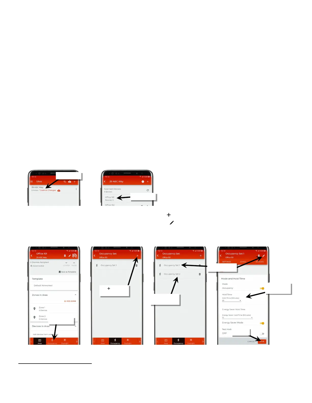 3: Tap on the ‘Occupancy’ option to open the occupancy set list and then tap ‘ ’ to add an occupancy set.