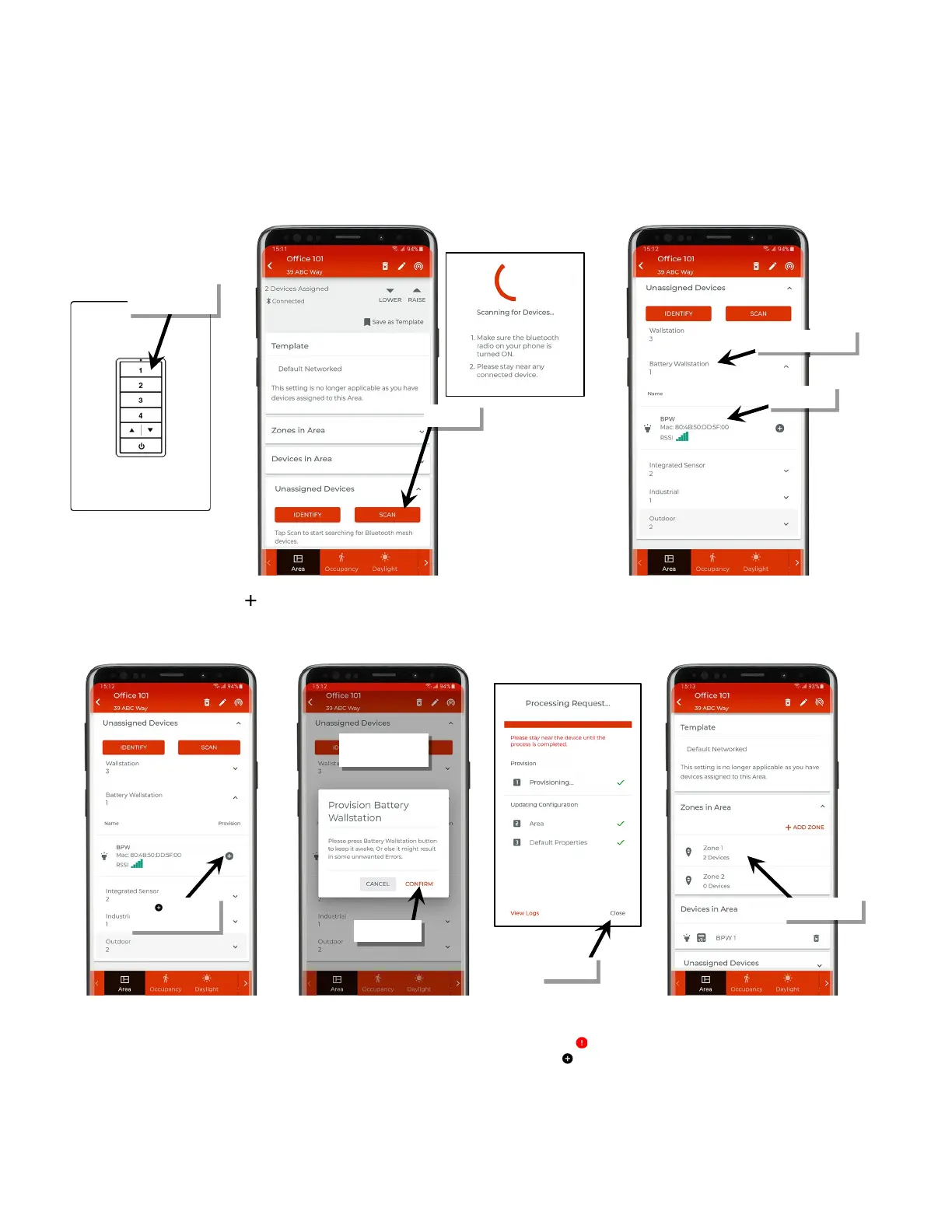 17: Staying near the device, tap ‘ ’ next to the wallstation to begin the provisioning process. When prompted, press any button on the