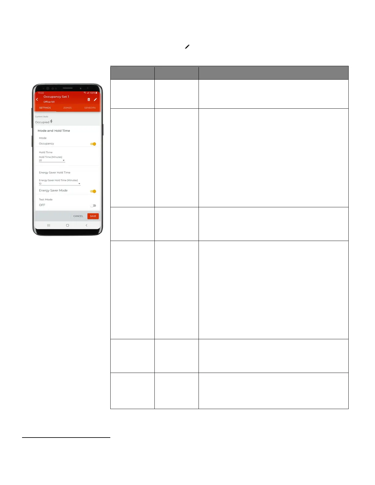 Current State N/A Displays the status of the occupancy set, either occupied or