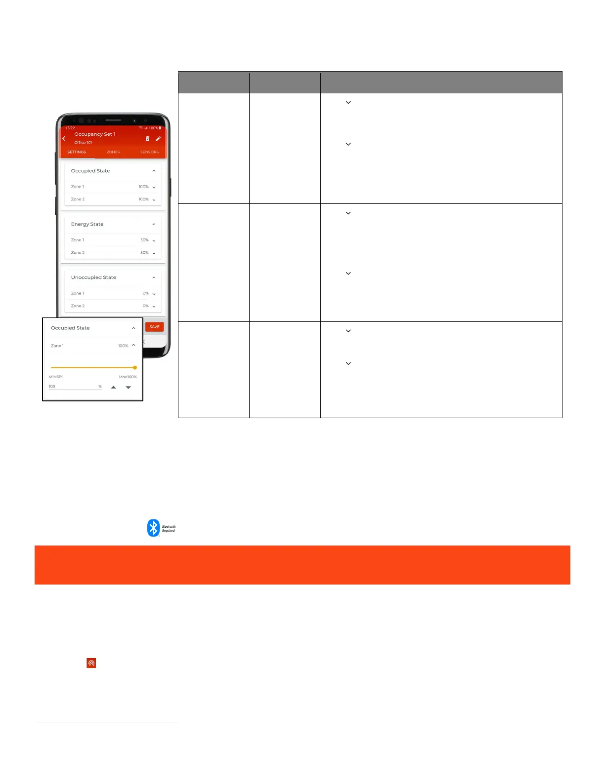 Tap ‘ ’ next to the zone to adjust the occupied light level