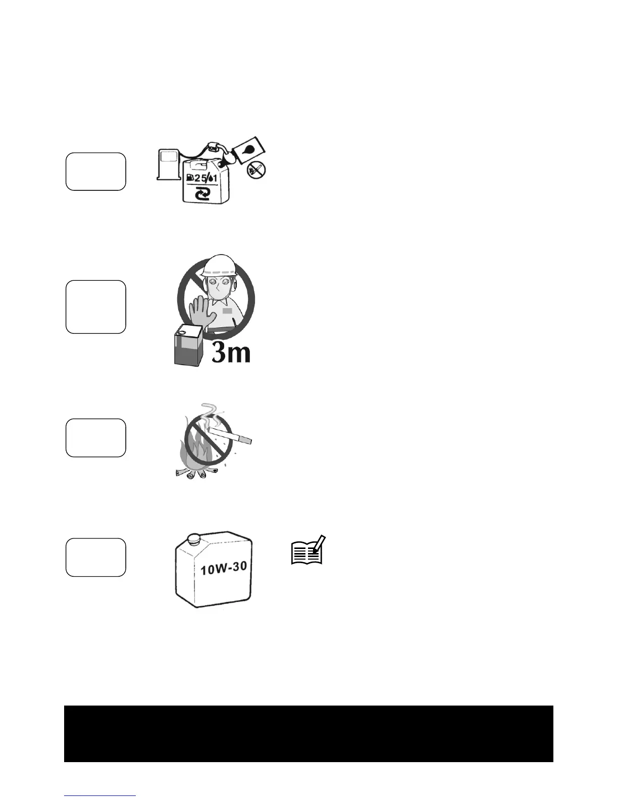 • Do not mix fuel and oil in the petrol tank of the