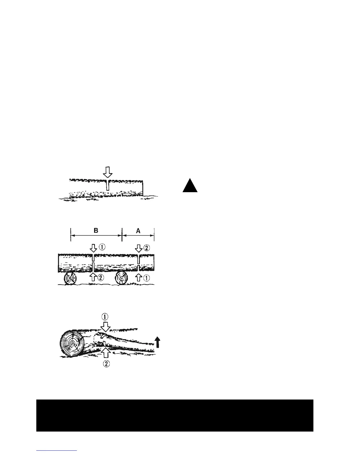 force inside the log to be cut. Always finish cutting