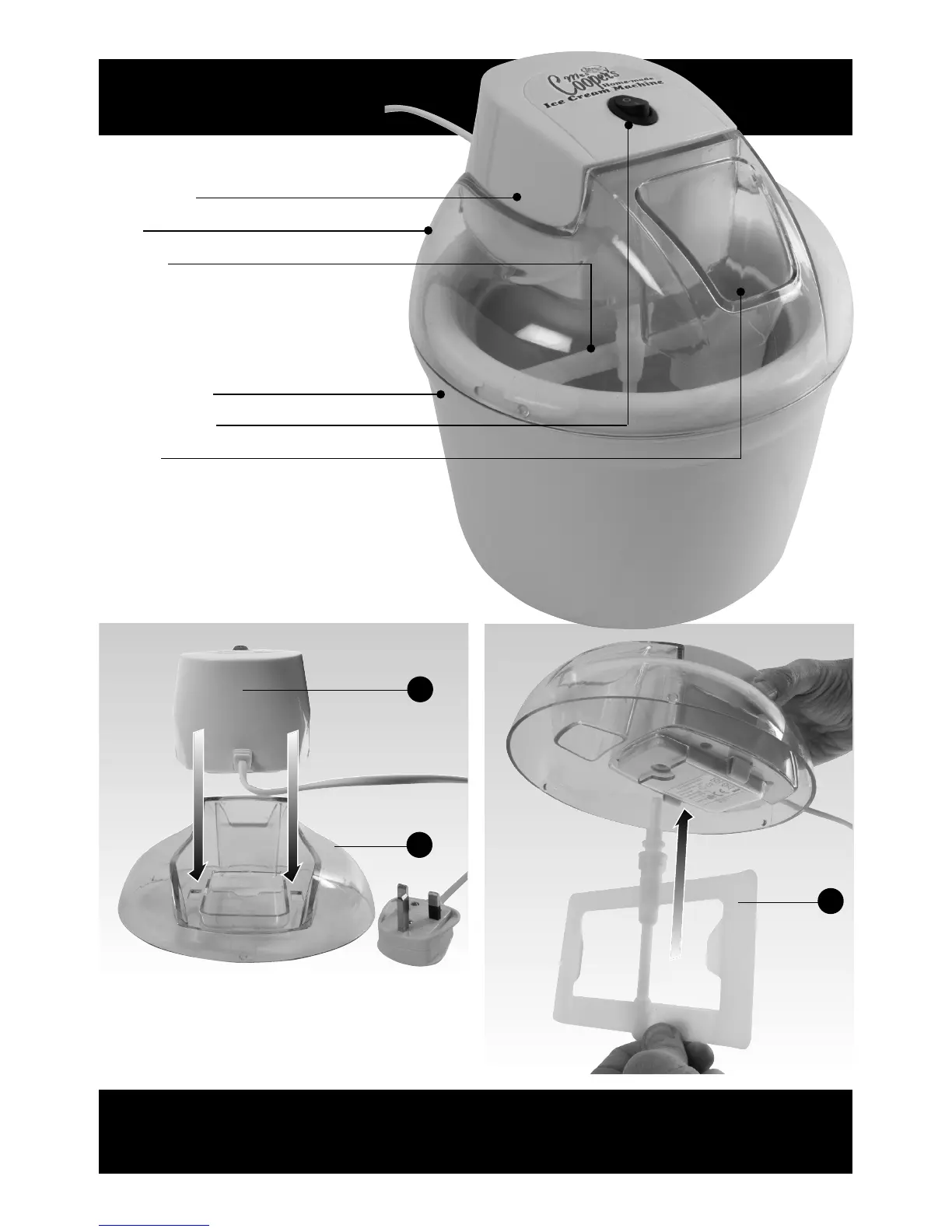 1. Fit the power unit (1) into the lid (2) ensuring it
