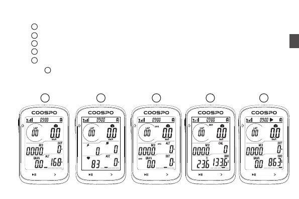 Page :Speed, Power, Cadence, Heart Rate, Ascent