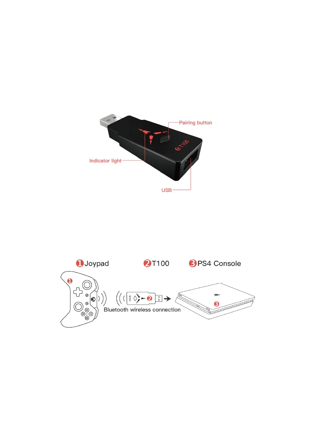 2. Insert the T100 into the PS4 Console as shown in the diagram, press the pairing button,