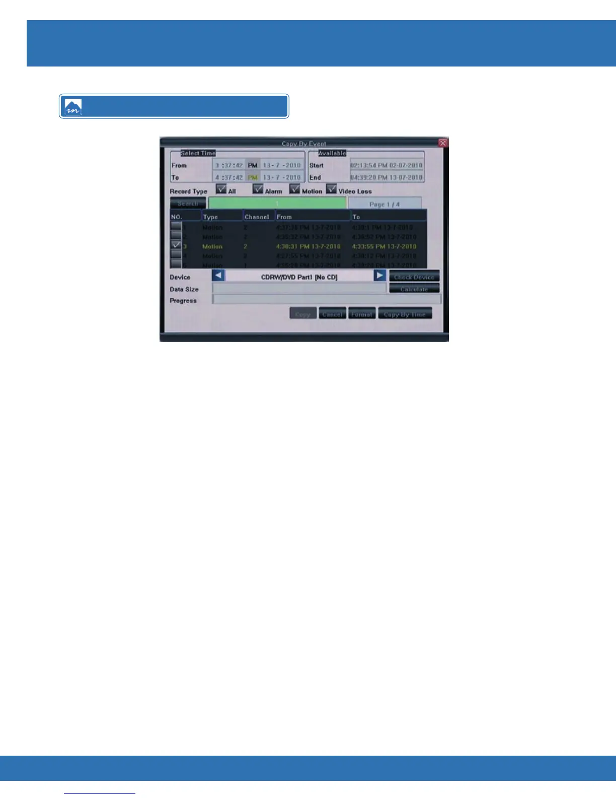 • Highlight Copy By Event and press Enter