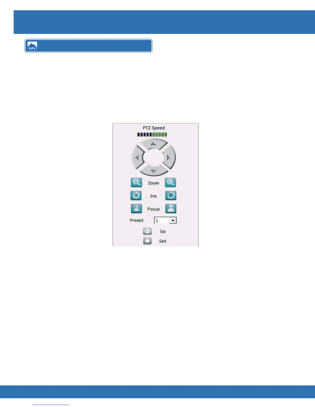The DVR web browser supports control of PTZ cameras if connected and programmed in the