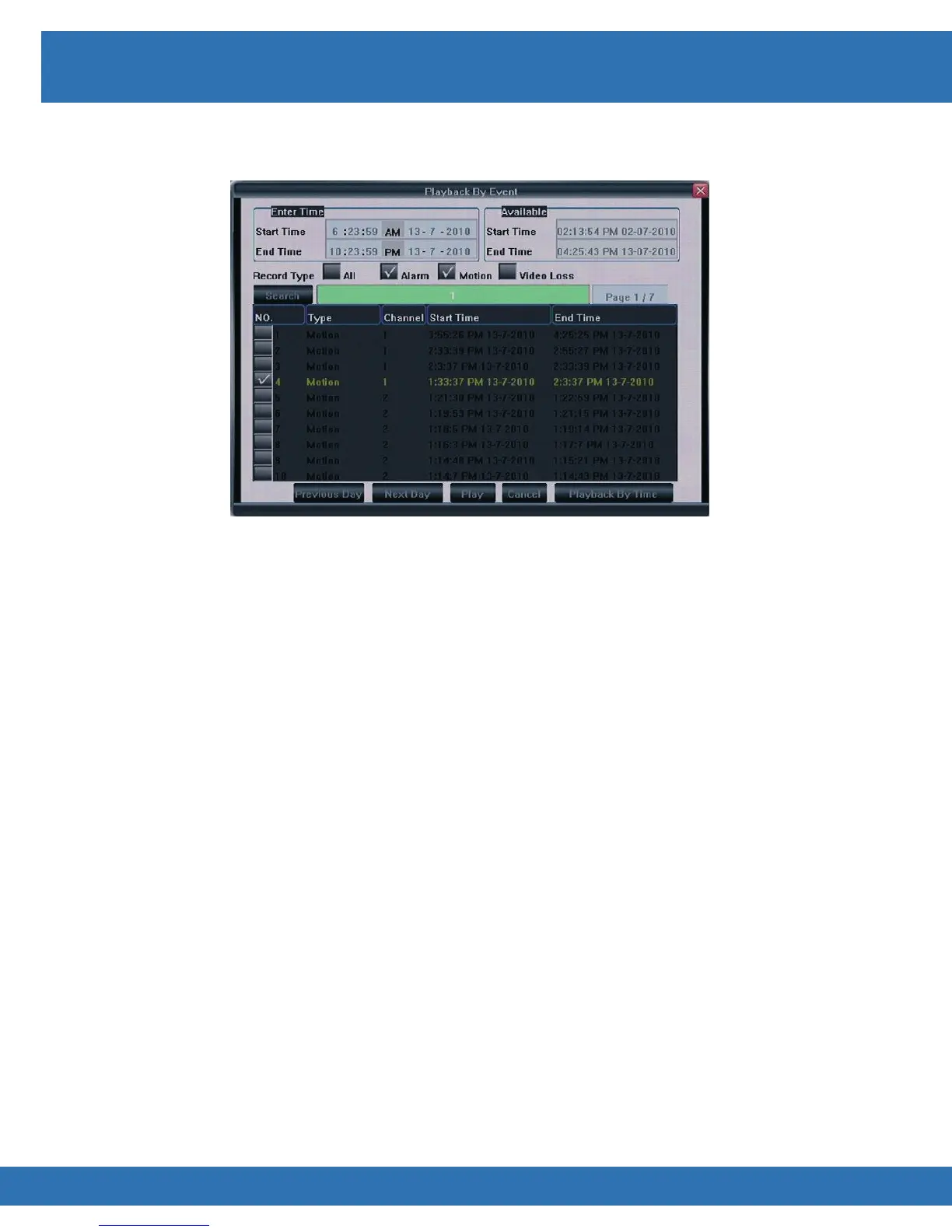 • Press ◄►▲▼ keys to navigate to Playback By Event and press Enter key