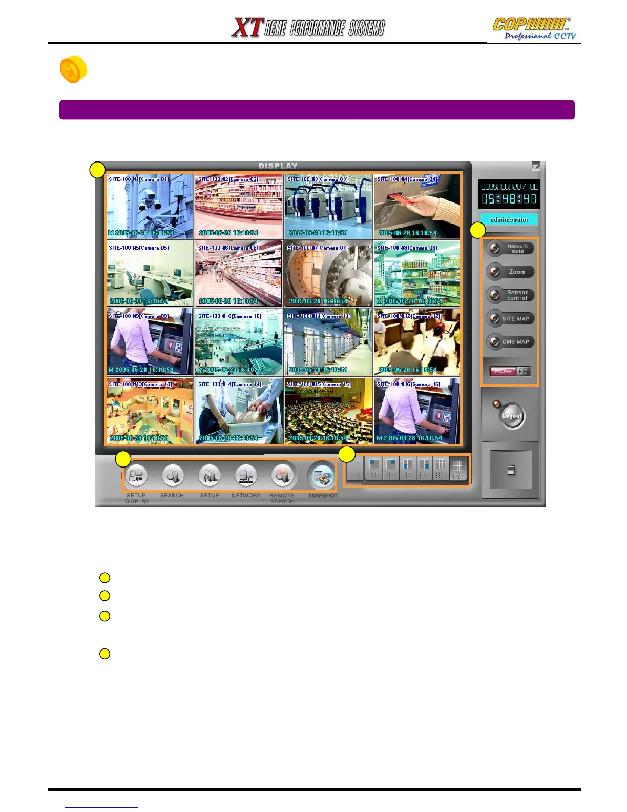 Display Screen : Displays images from remote monitoring site(s).