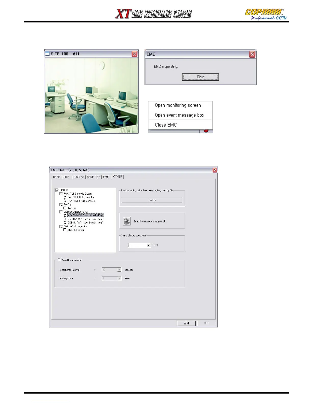 6) EMC single screen pop-up : automatically pop up with site name and camera number.
