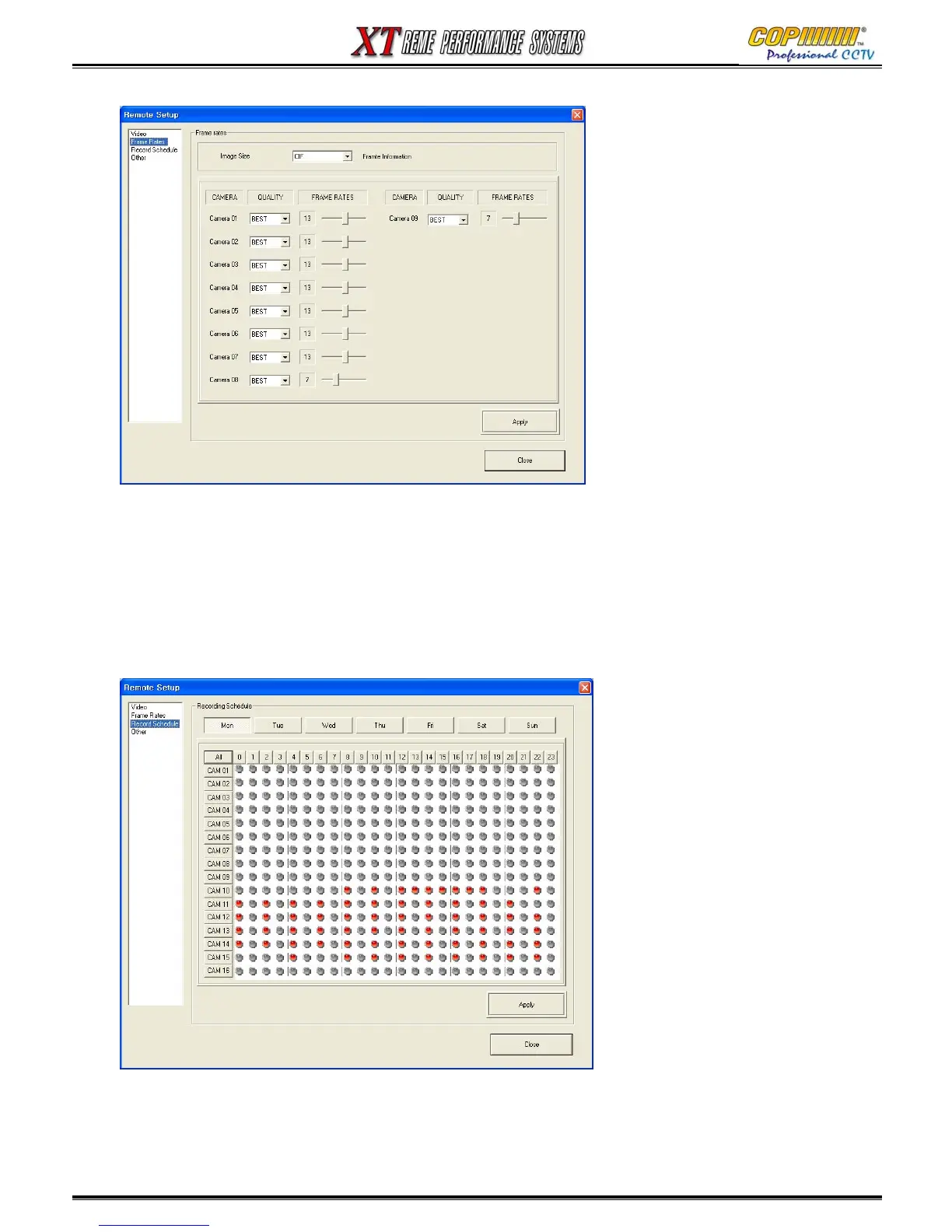 2) Individual Camera recording setup: The image quality and frame rate can be selected for each