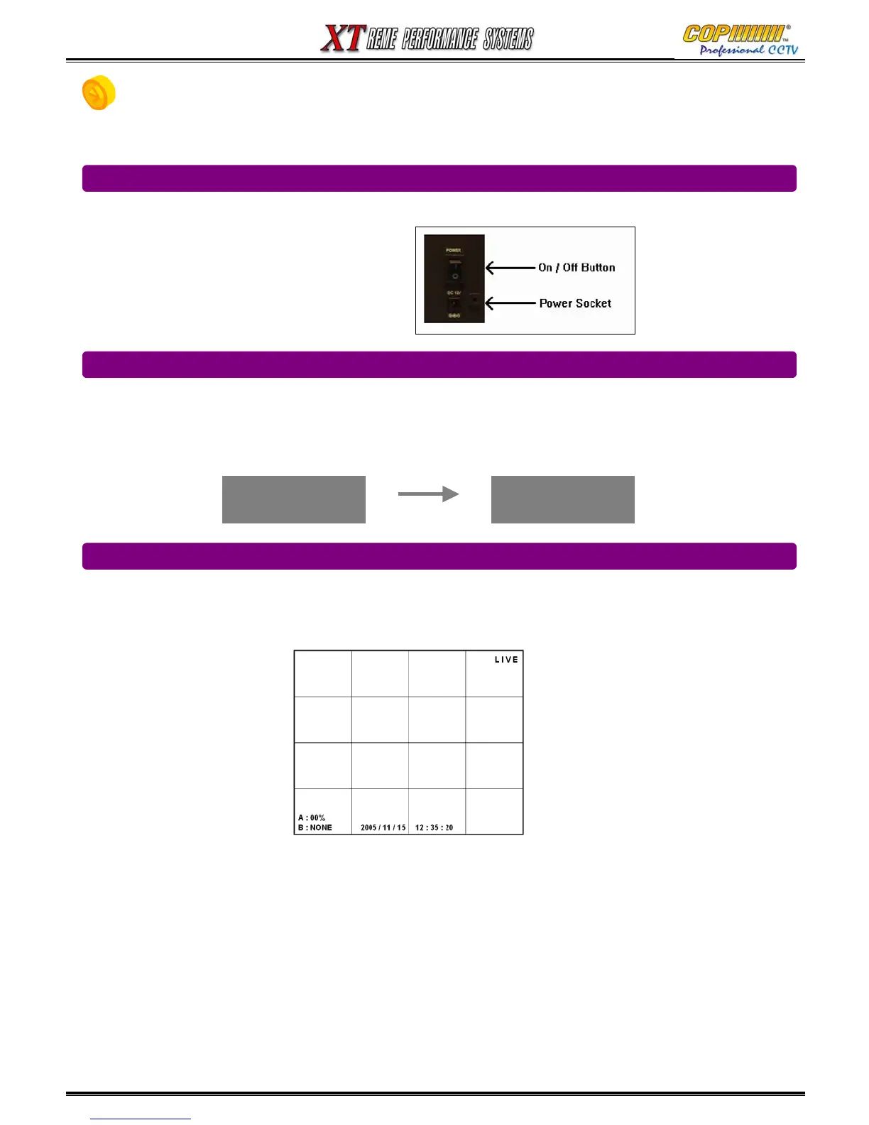 1) Live images, date and time will appear on the screen.
