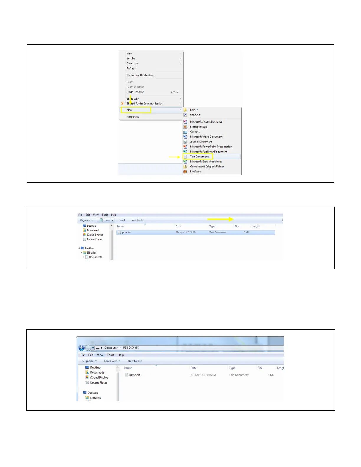 1. On a blank USB drive, create a new Text Document.