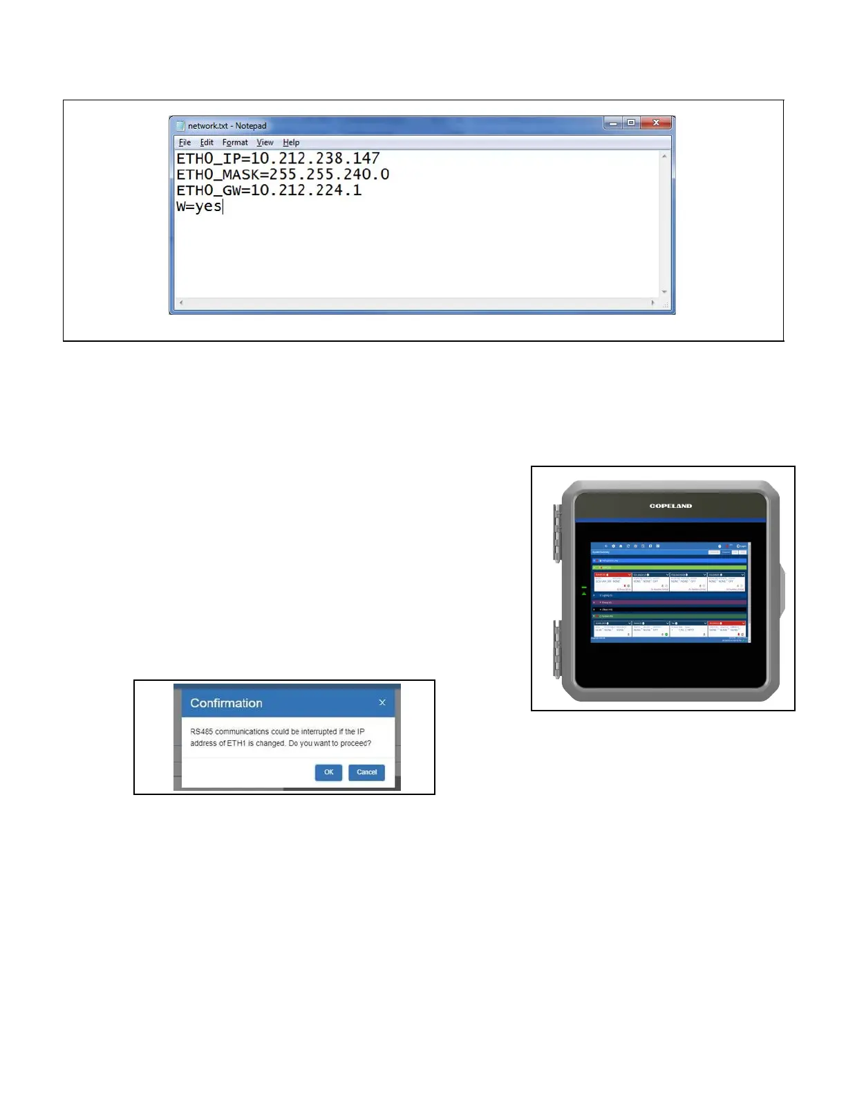 ETH1 IP Address Change Warning Message