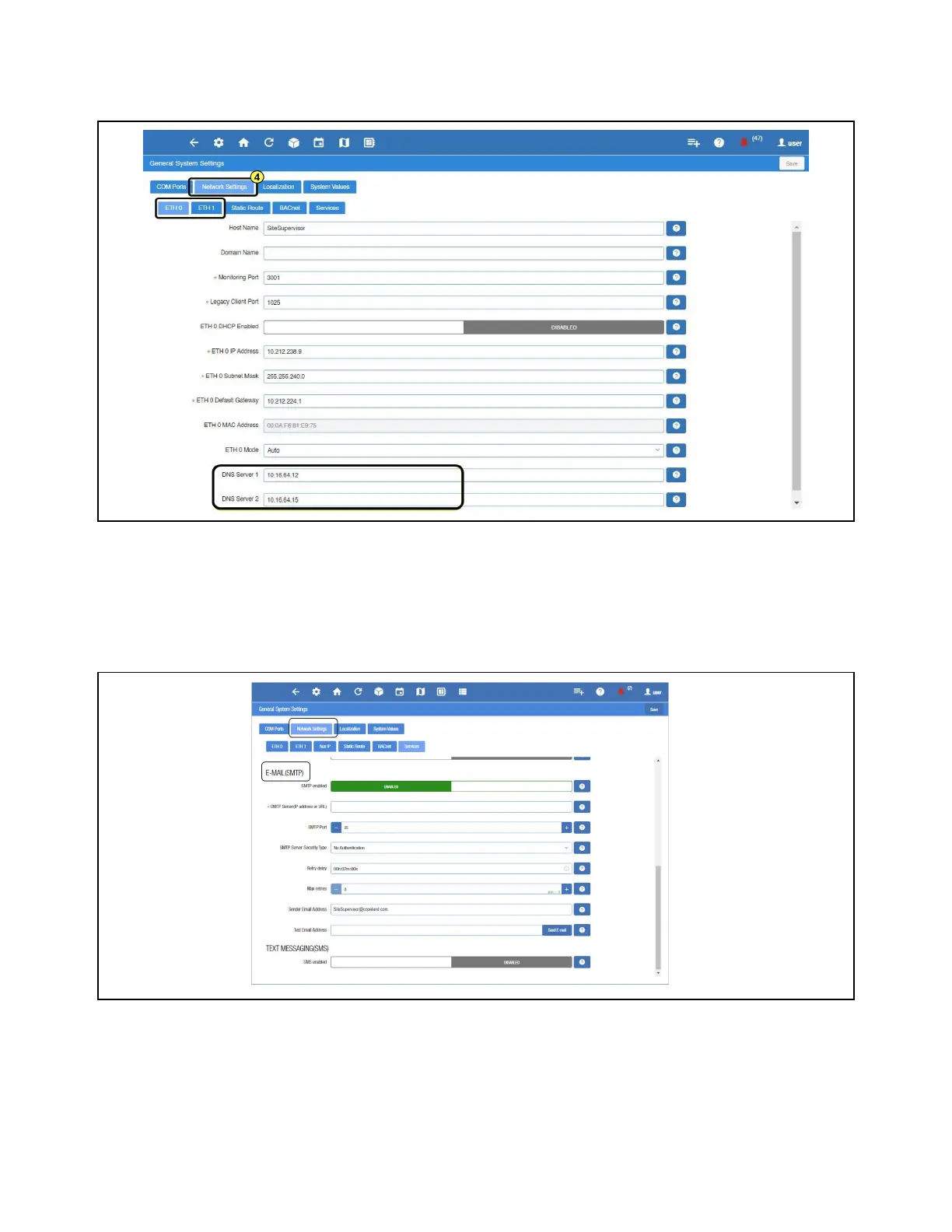 2. Click the gray box to toggle ENABLED for SMTP email messaging. The setup options will appear after enabling.