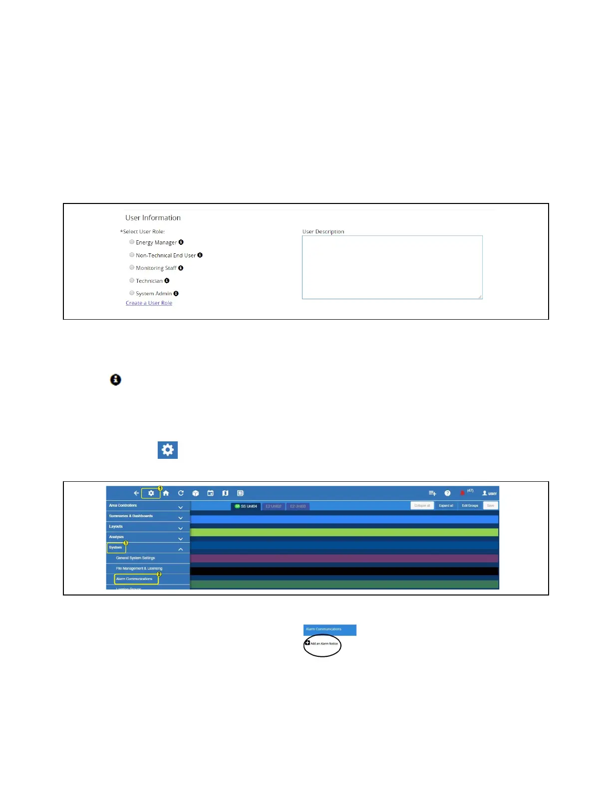 4. The User Information area allows the user’s login access level to be set. Depending on the selected role, the user can View,