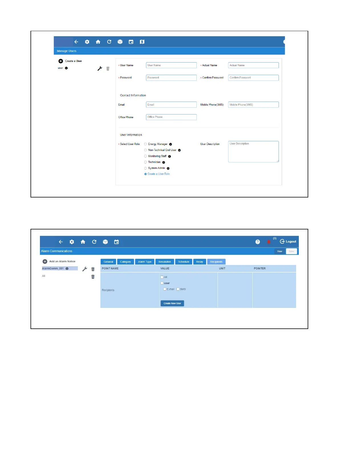 1. Select the user who will be notified by Alarm Communications. Check the appropriate boxes to enable the email and/or