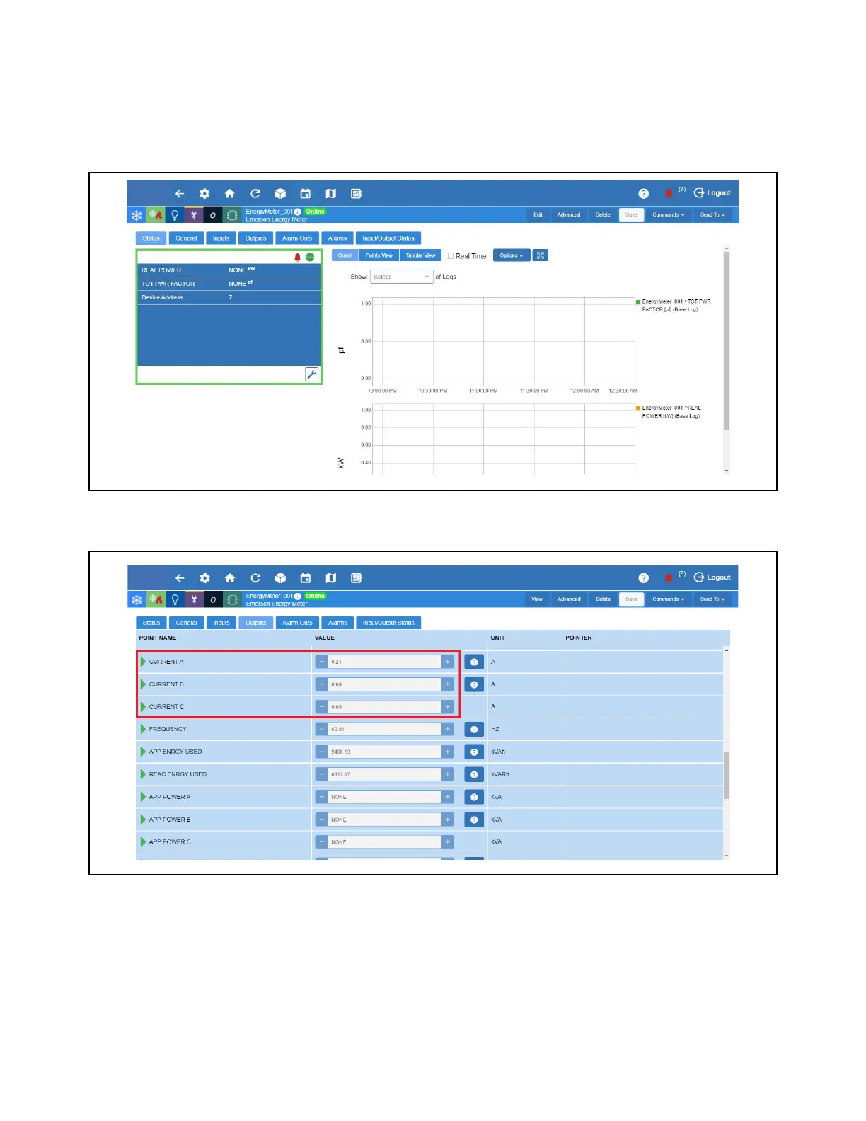 2. Go to Outputs tab and locate Current A, Current B and Current C.