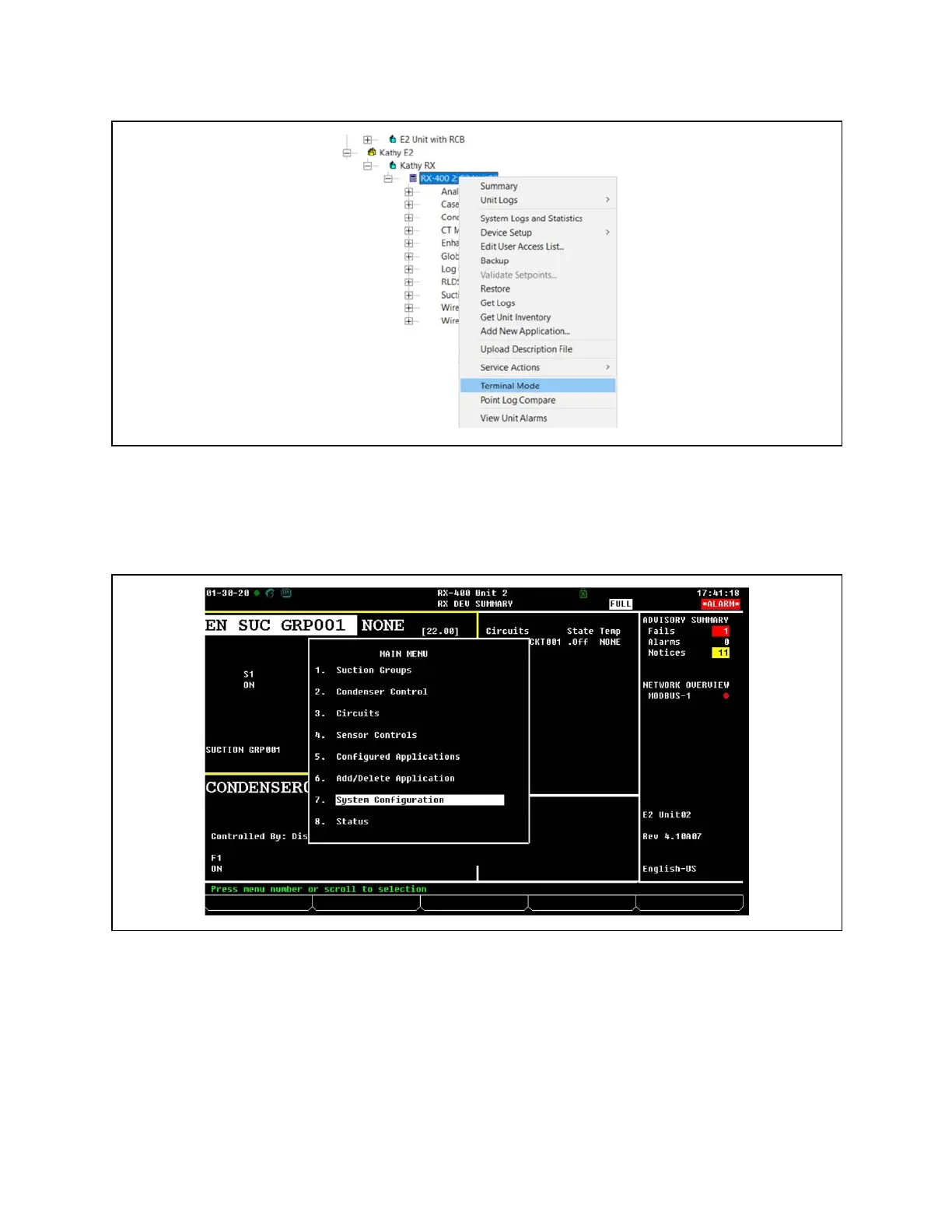 To set up the Peer Network from the E2, right-click the desired E2 and open Terminal Mode:
