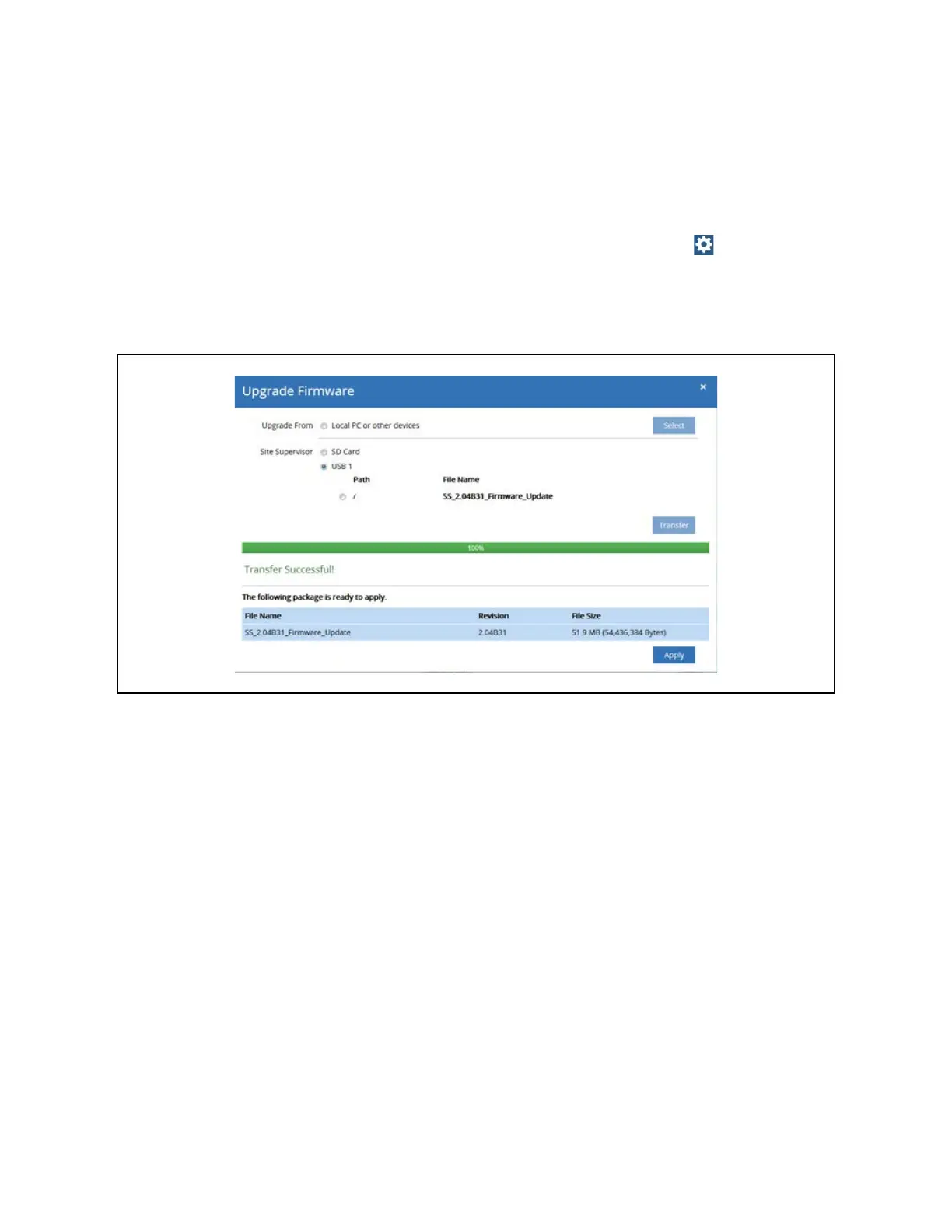 6. Click Apply. A progress bar will appear with the percentage complete. The system will reboot and restart automatically