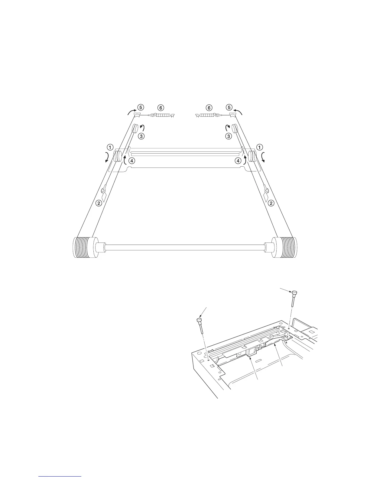 13. Hook the round terminals onto the scanner tension springs. ........................................................................ (6)