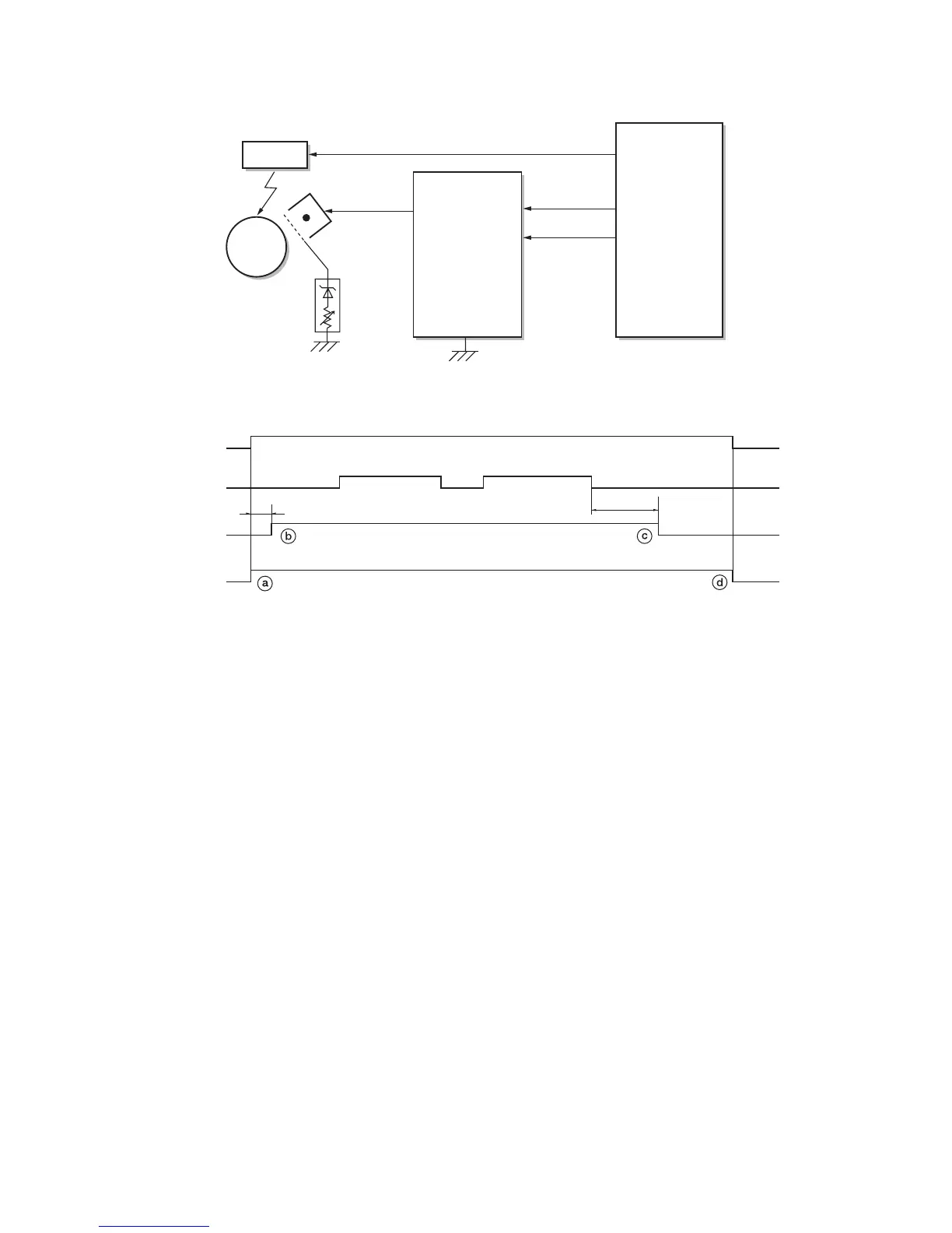 b: 100 ms after the drive motor (DM) turns on, main charging starts.
