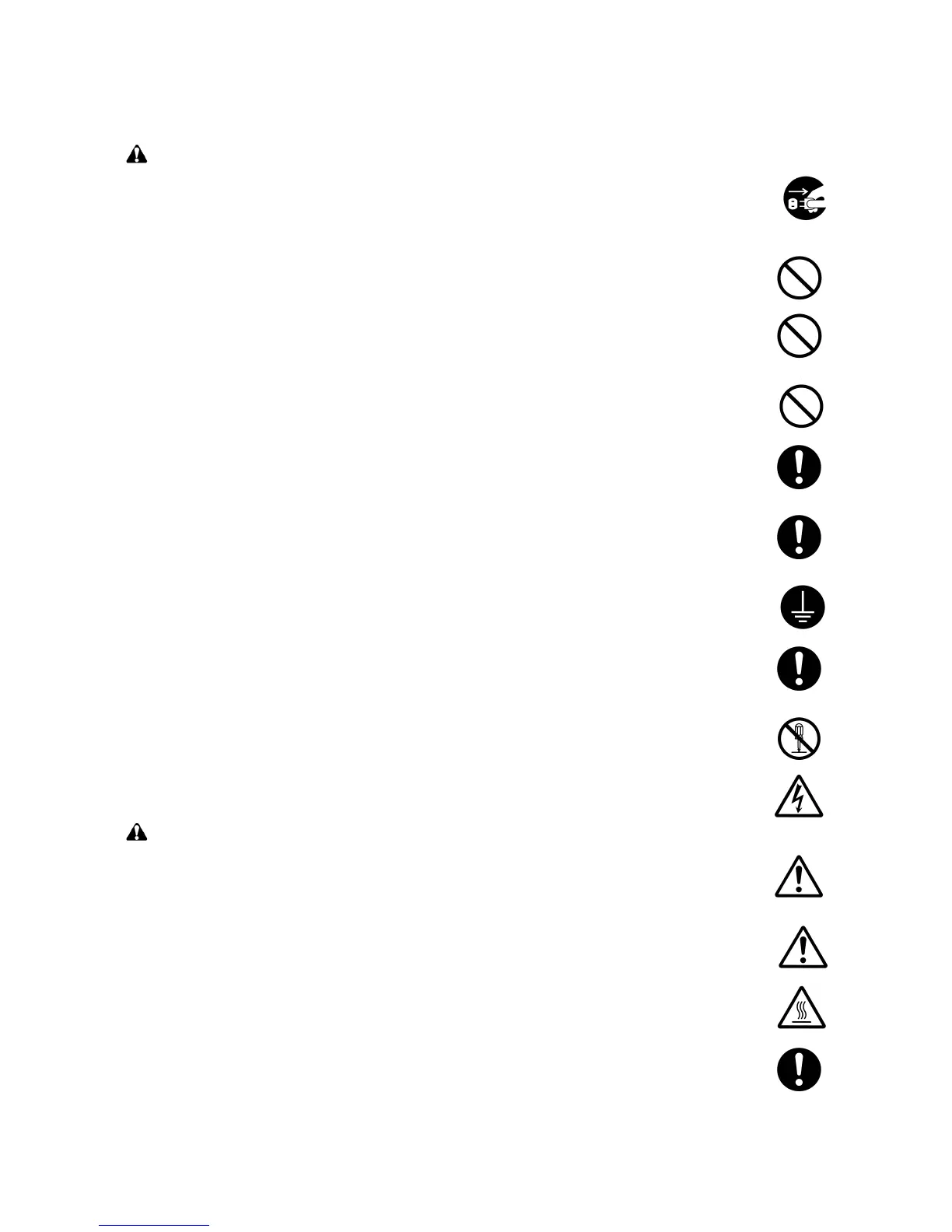 • Always remove the power plug from the wall outlet before starting machine disassembly. ...............