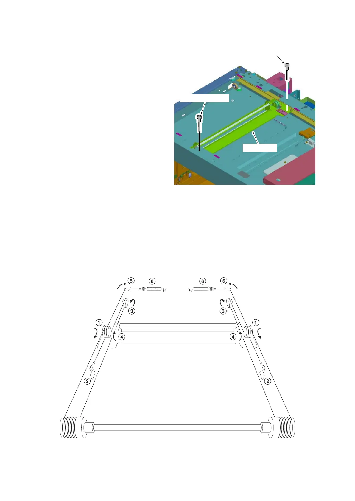 15. Hook the round terminals onto the scanner wire springs................................................................................. (6)