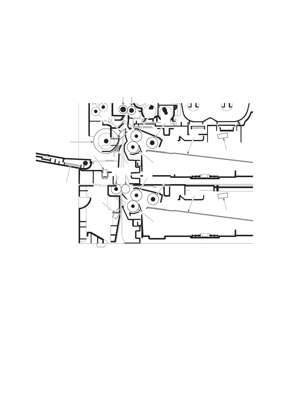 standard for 22 ppm model) or MP tray to the left and right registration rollers, at which point secondary feed takes place