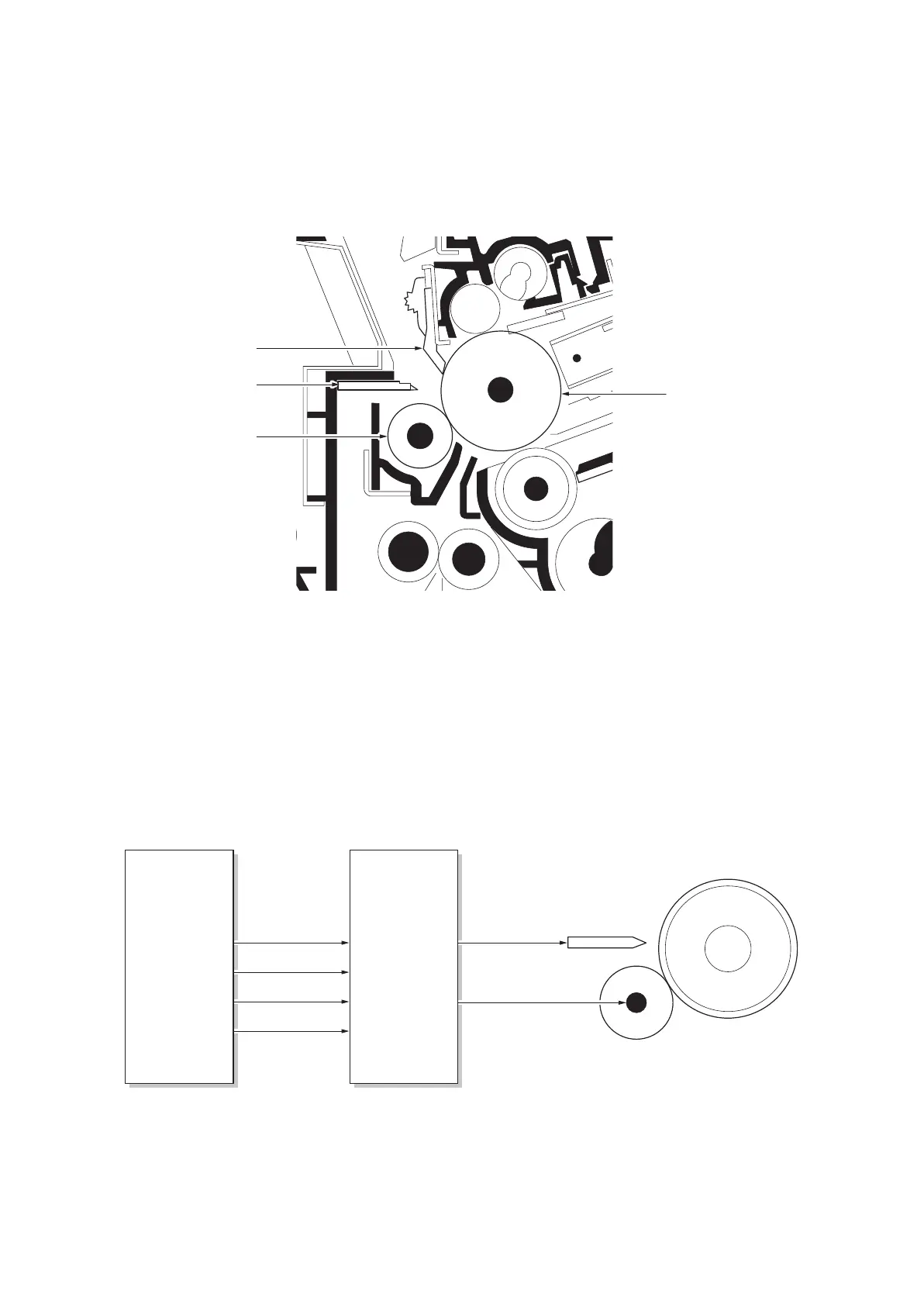 The transfer and separation sections consists of the transfer roller, separation electrode and drum separation claws.