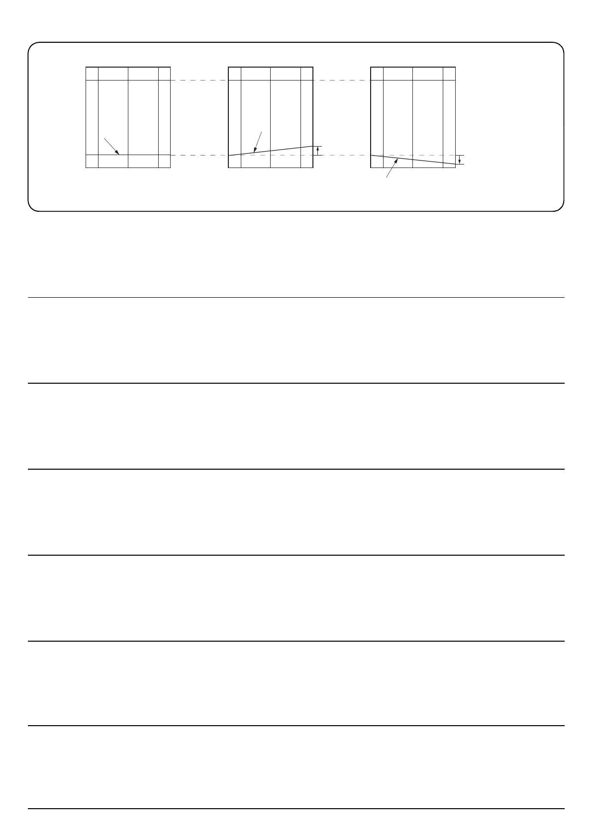 Vérifiez l’écart entre la ligne (1) de l’original (a) et la ligne (2) de l’exemple de copie. Si l’écart est supérieur à la valeur de référence, effectuez le réglage