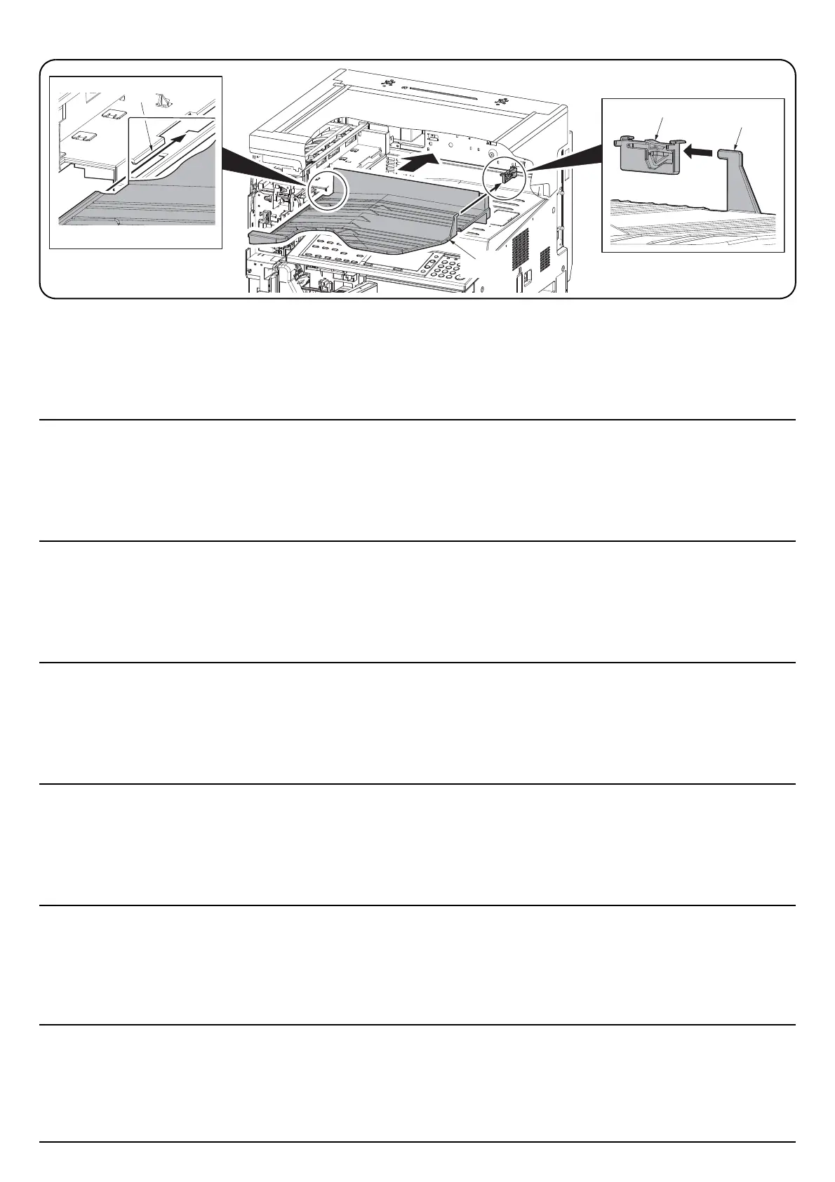 16.Install the job separator tray (D) from the front side of the machine.