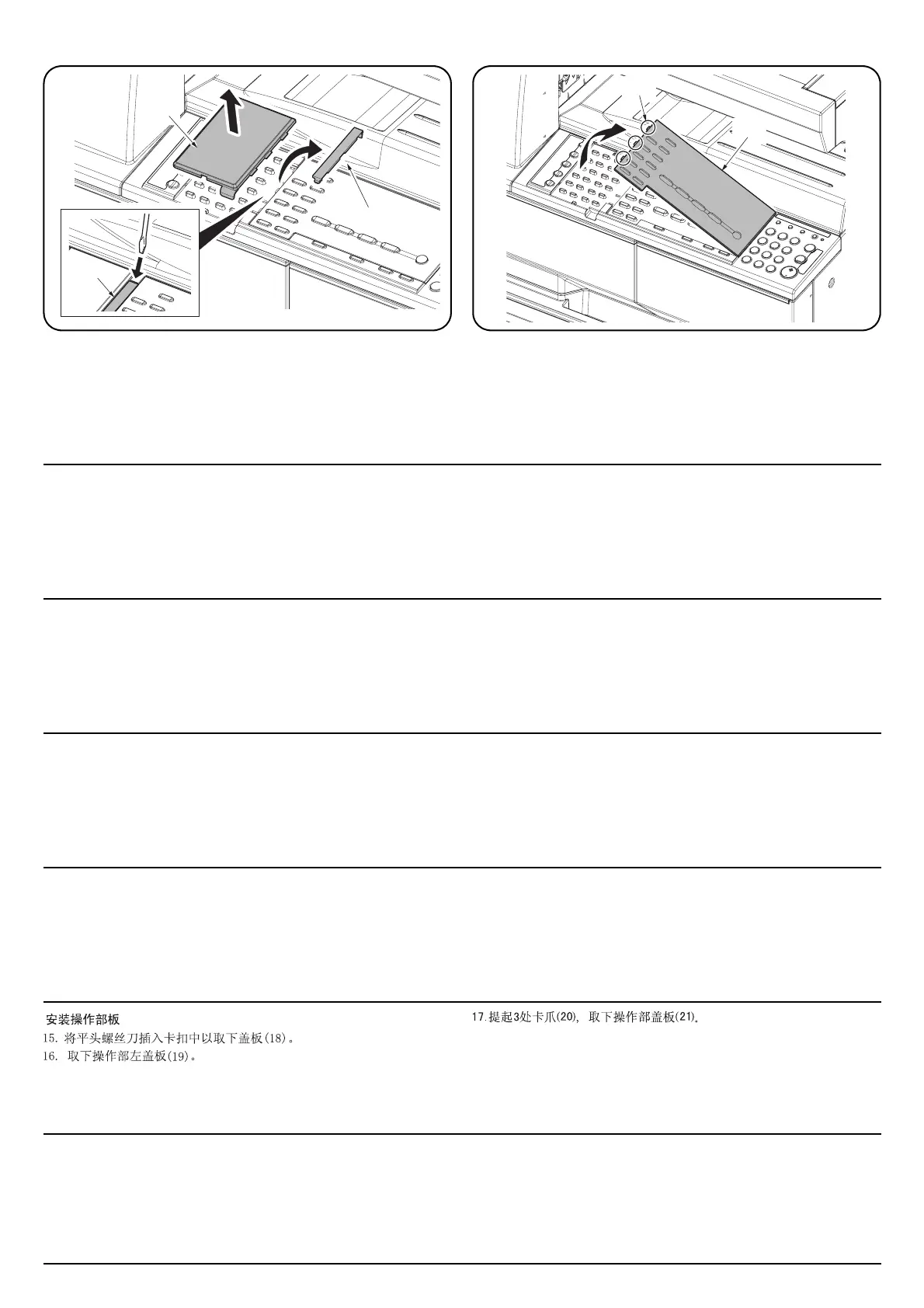 16.Remove the left cover of the operation section (19).