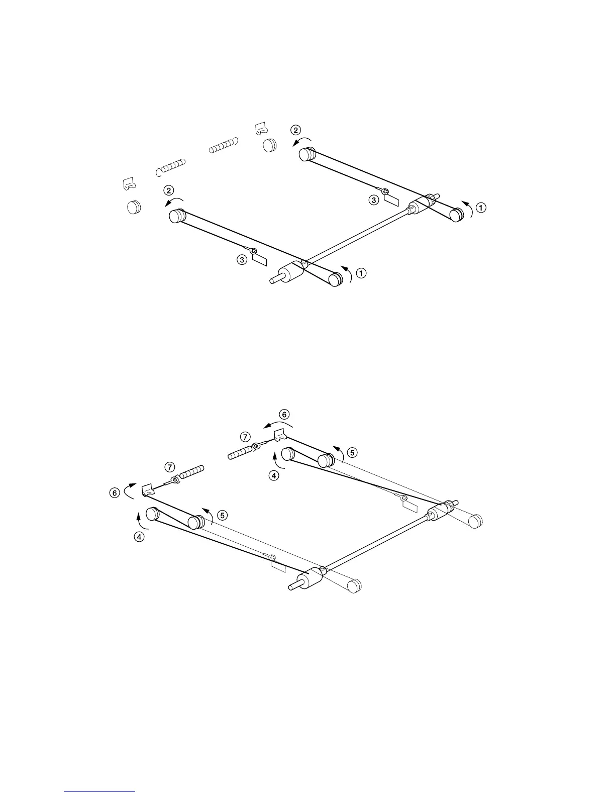 11. Loop the outer ends of the scanner wires around the grooves in the scanner wire pulleys at the left of the