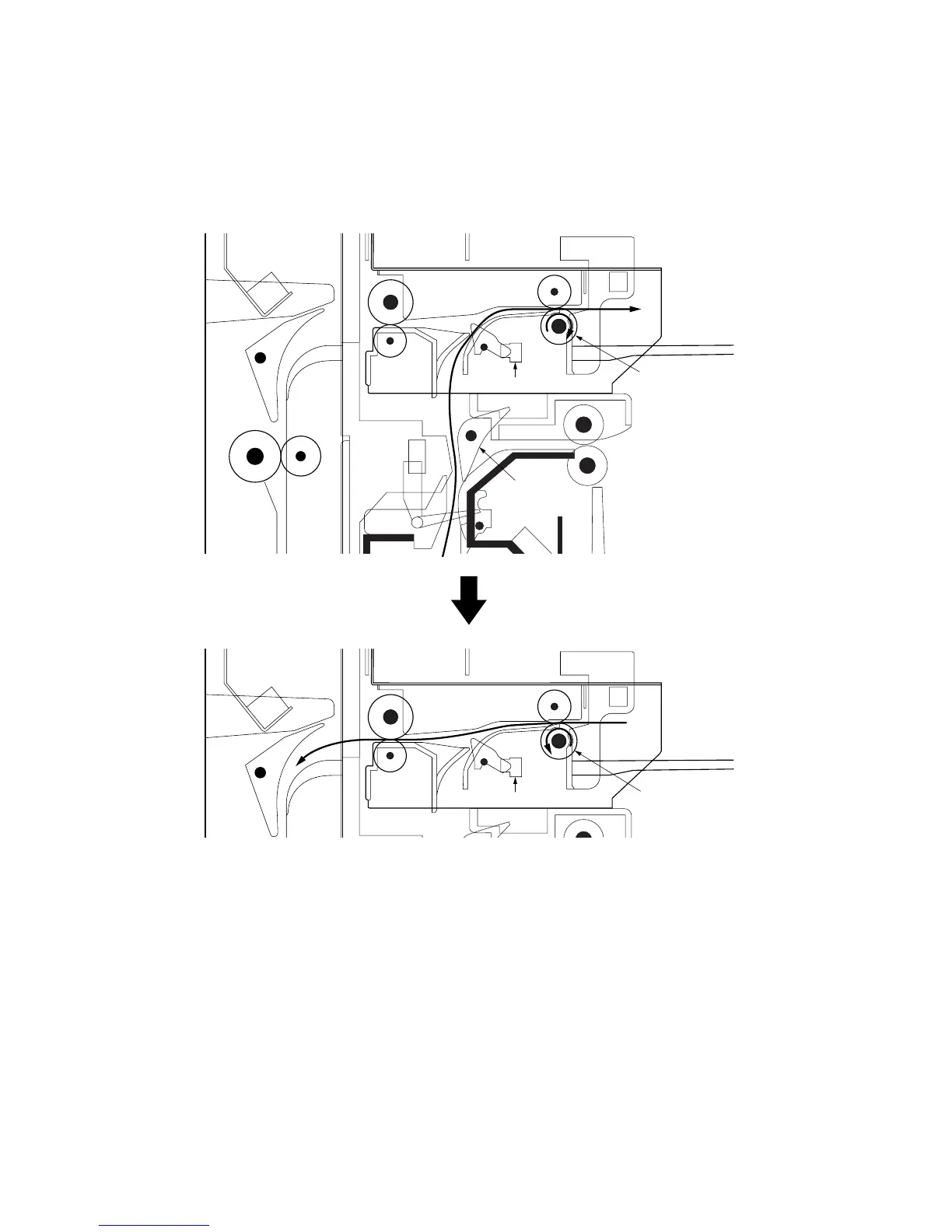 guide of the copier operates to switch the paper path to the feedshift section. When the trailing edge of the paper passes the