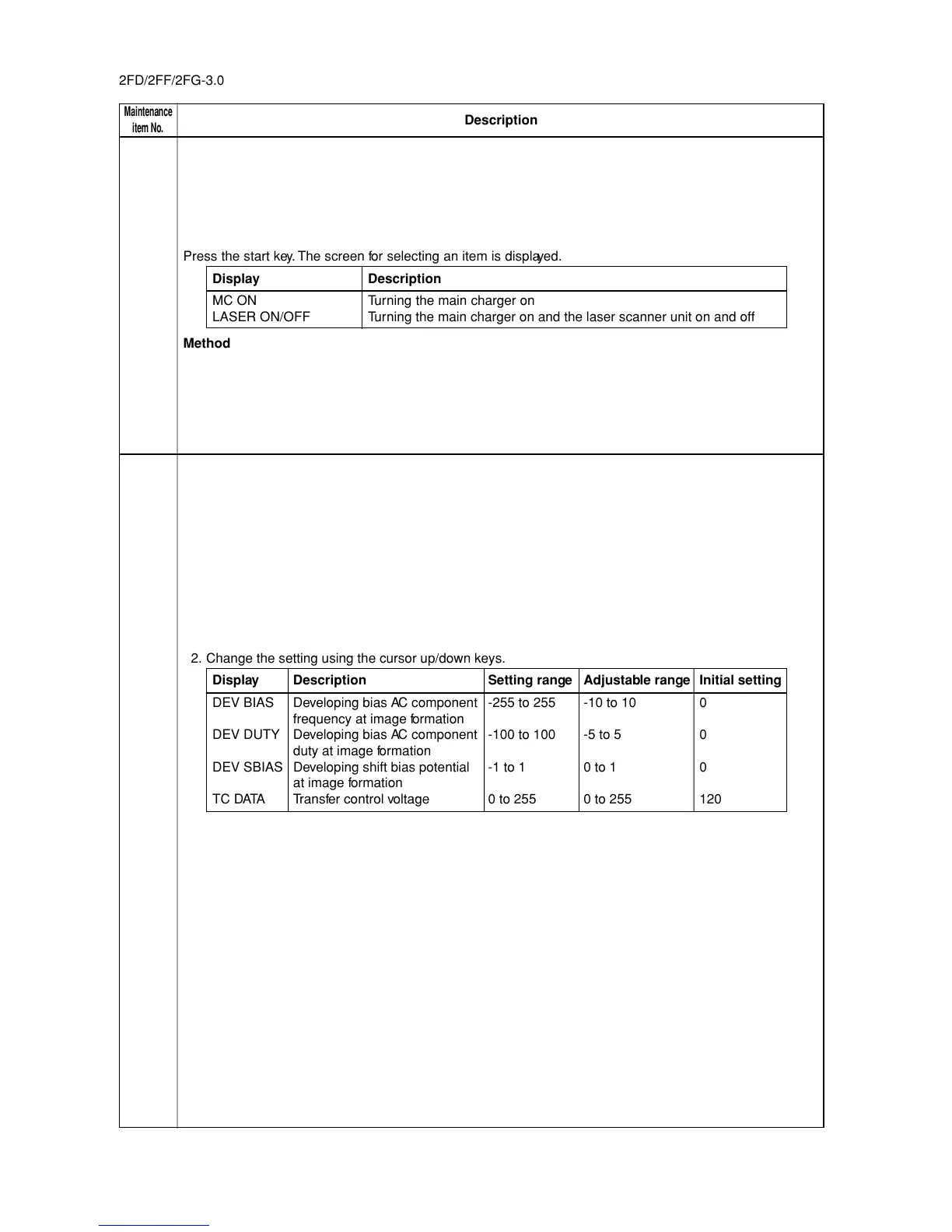 DEV BIAS Developing bias AC component -255 to 255 -10 to 10 0