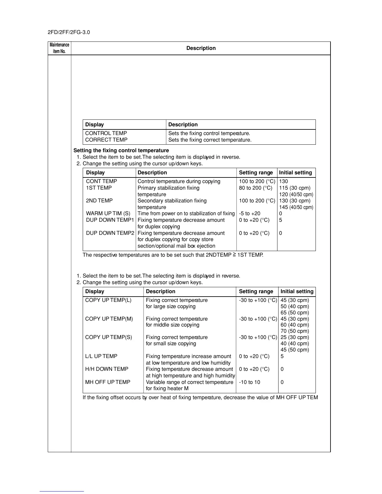 COPY UP TEMP(L) Fixing correct temperature -30 to +100 (°C) 45 (30 cpm)