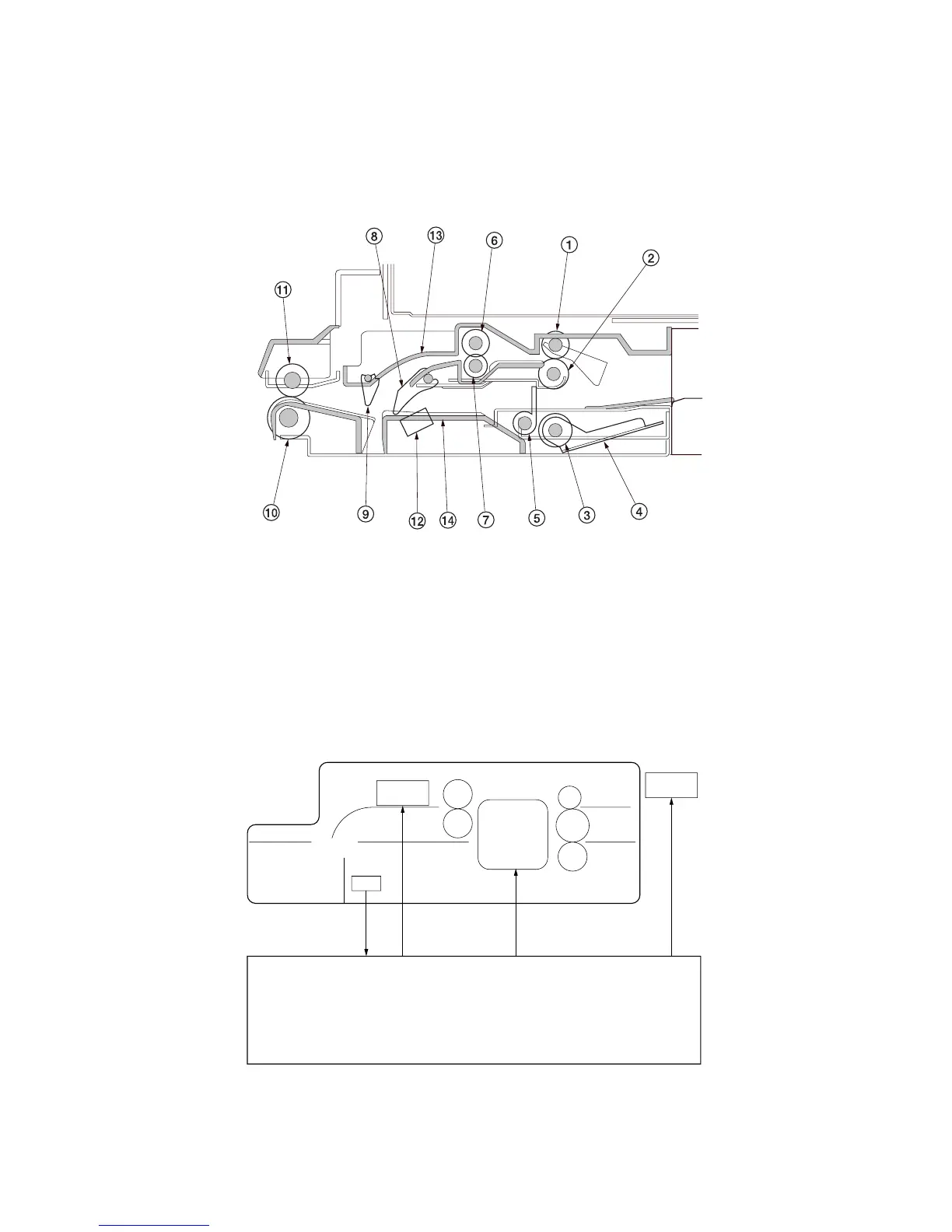 The paper conveying section consists of the components shown in Figure 2-1-1. It switches the path for the paper conveyed