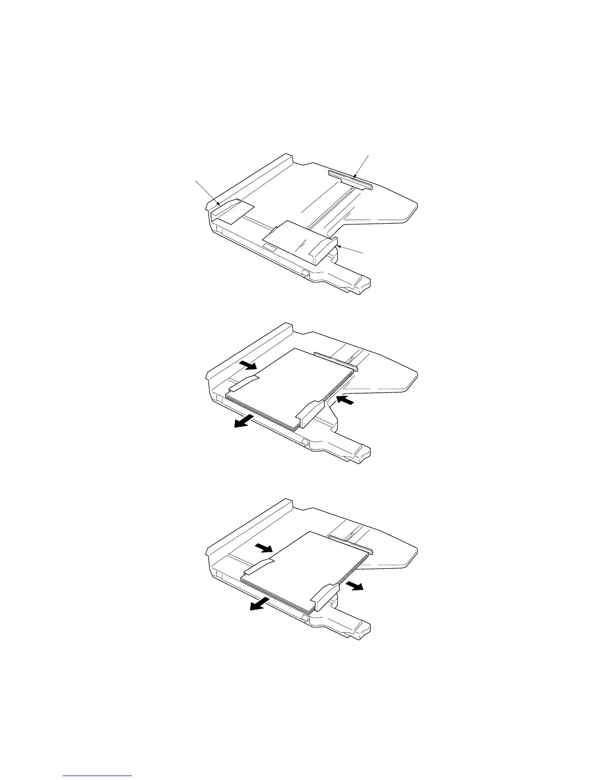 toward the machine front, and then the trailing edge registration cursor shifts the stack to the stapling position.