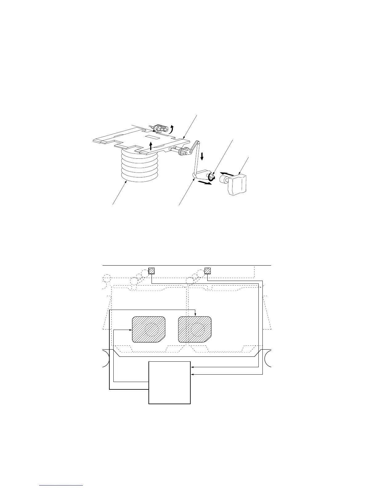 The following is a description of the right cassette lift operating mechanism. The left cassette lift operates in the same