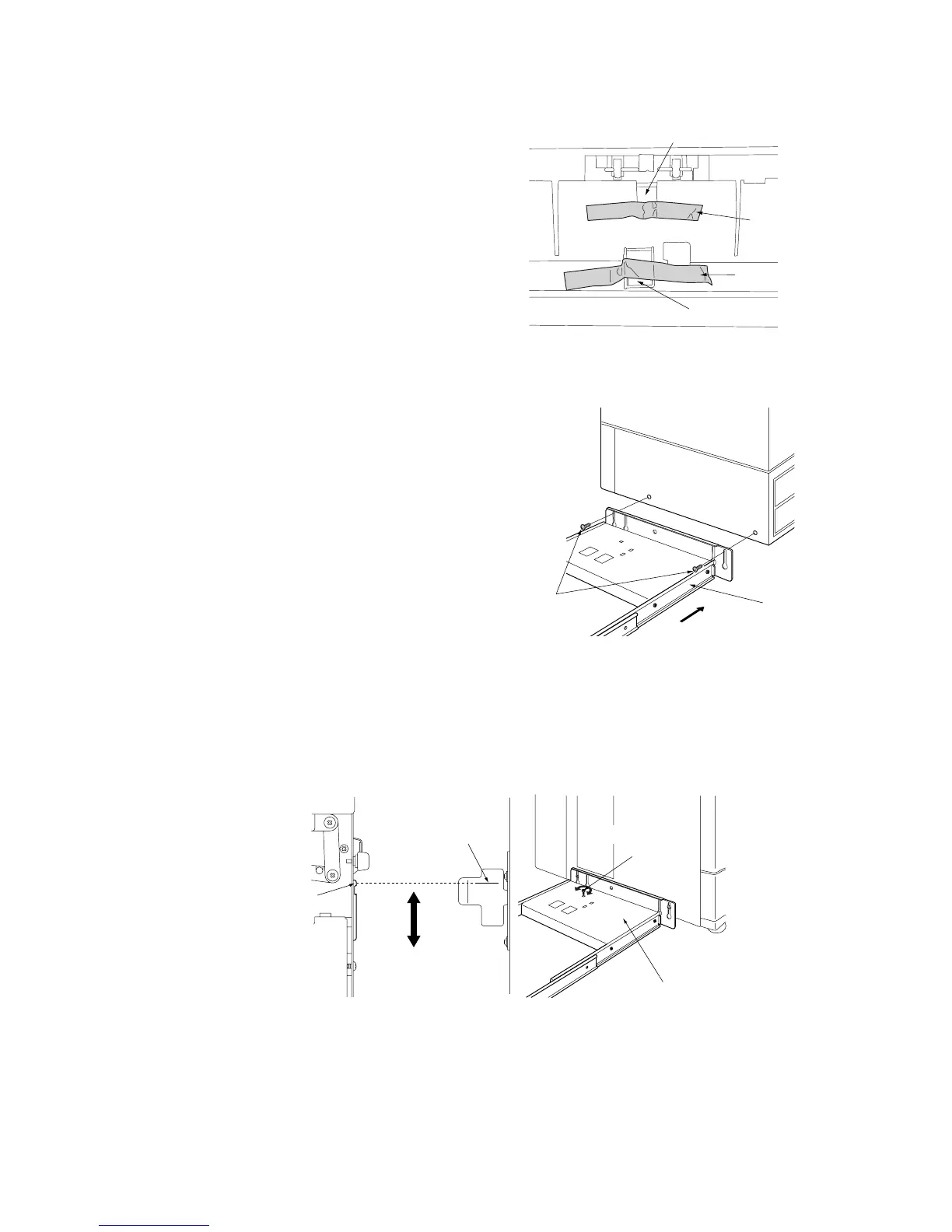 8. Move the finisher next to the copier, and open the finisher’s front cover. Adjust the height-adjustment screw in the rail