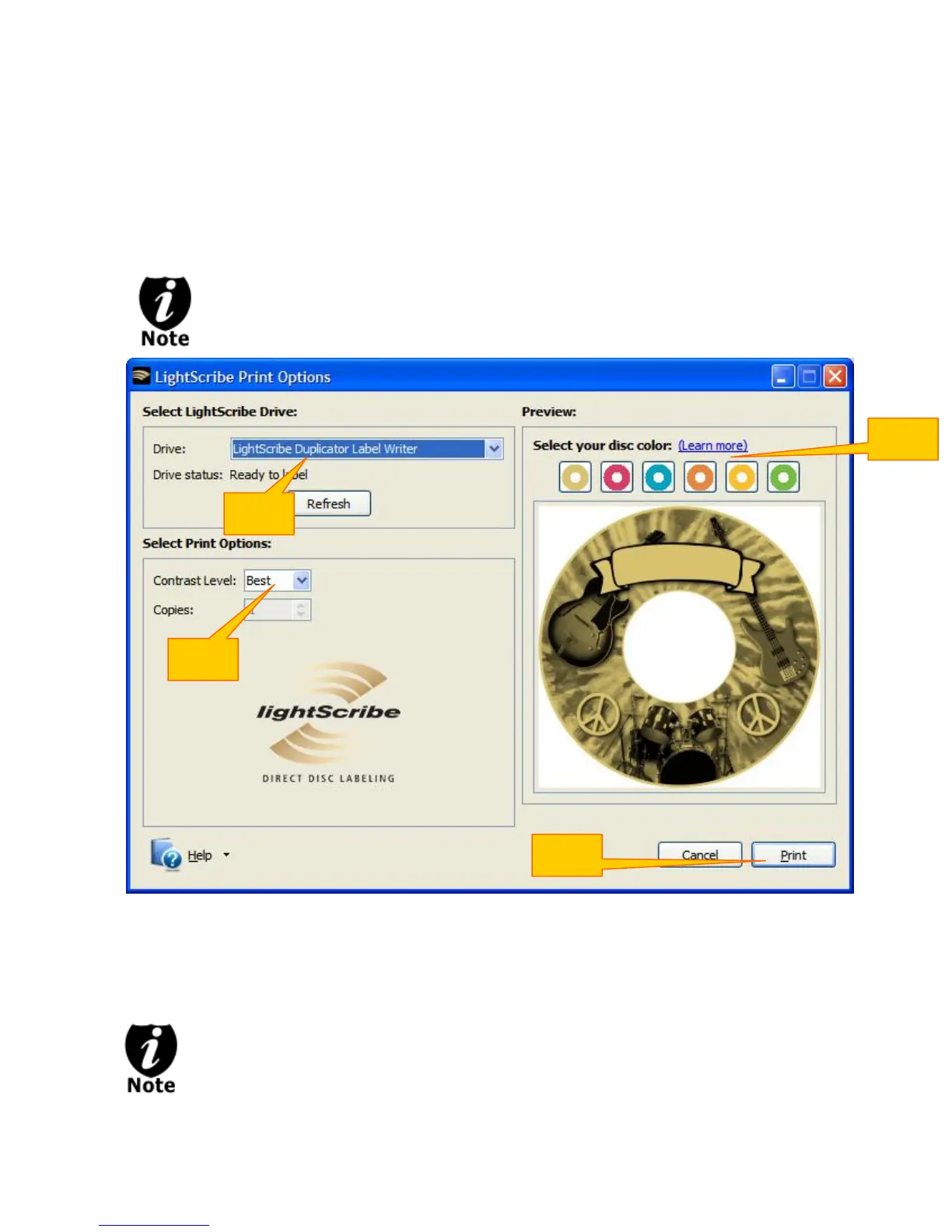 ¾ Select the “LightScribe Duplicator Label Writer” as the LightScribe Drive. (7)