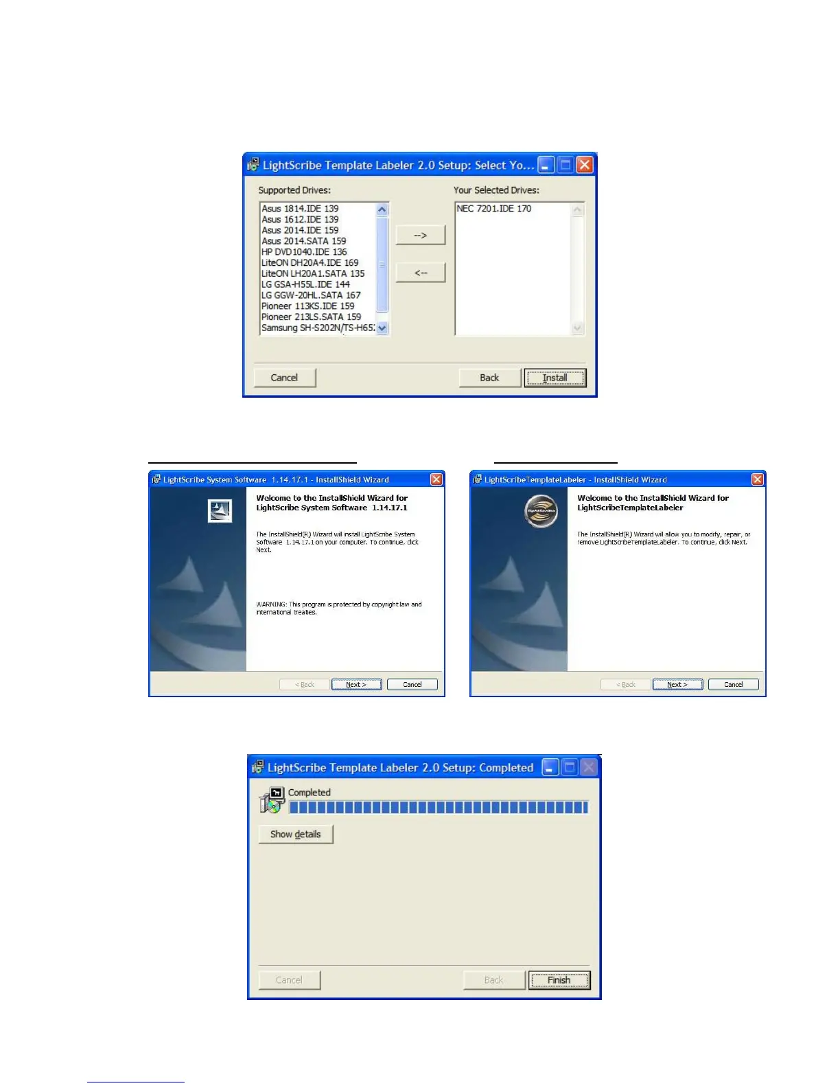6. You will then be asked to choose the LightScribe writer model that was installed in your