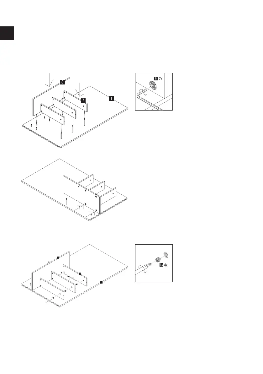 Regalbretter (Teile 6 und 7) auf die Bolzen