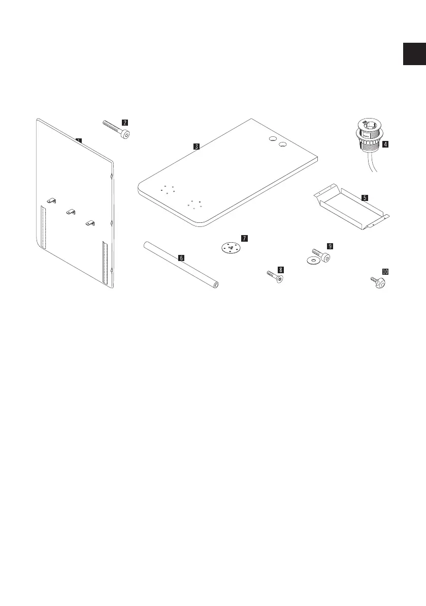 9. 3 x Schraube (für Montagewinkel an Tischplatte)