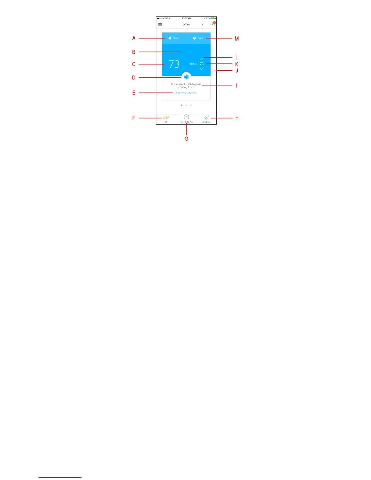 E. Indoor humidity level. Touch to go to humidity settings screen.