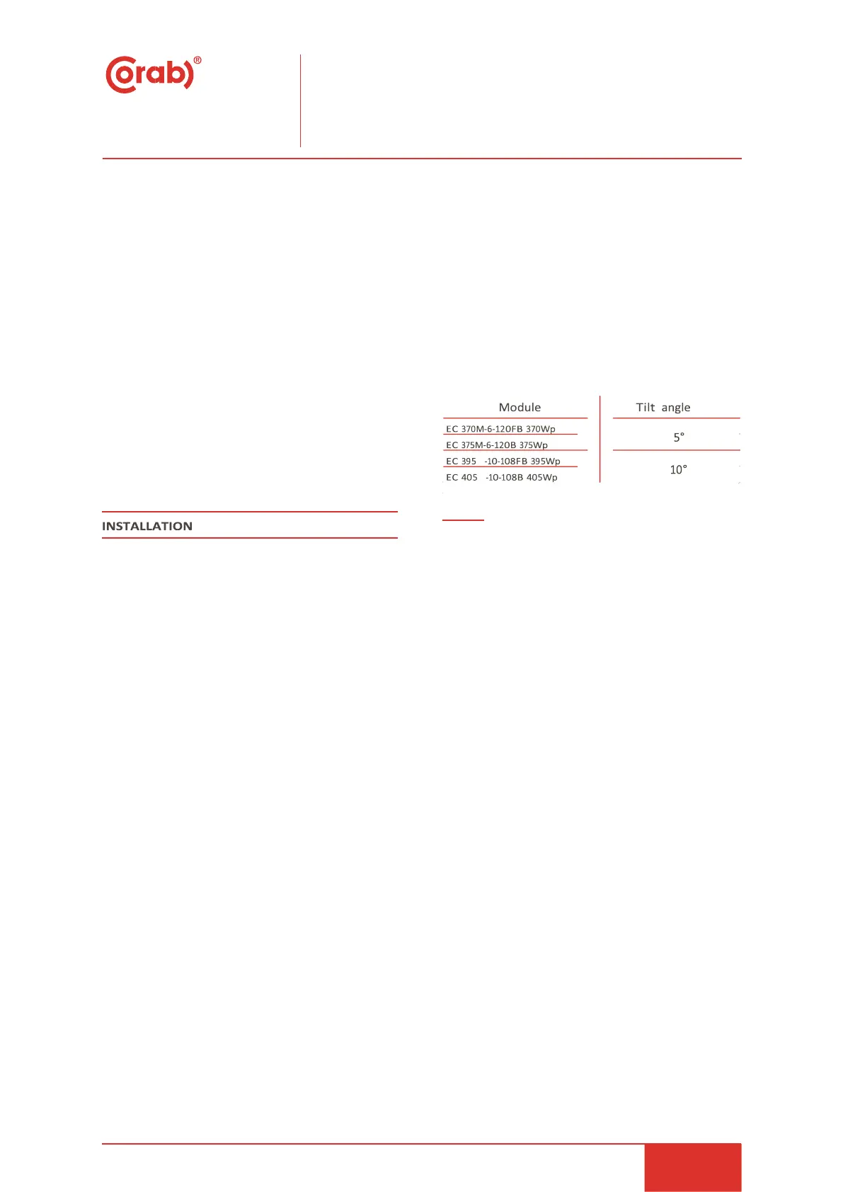 hemisphere, the module is recommended to face north.