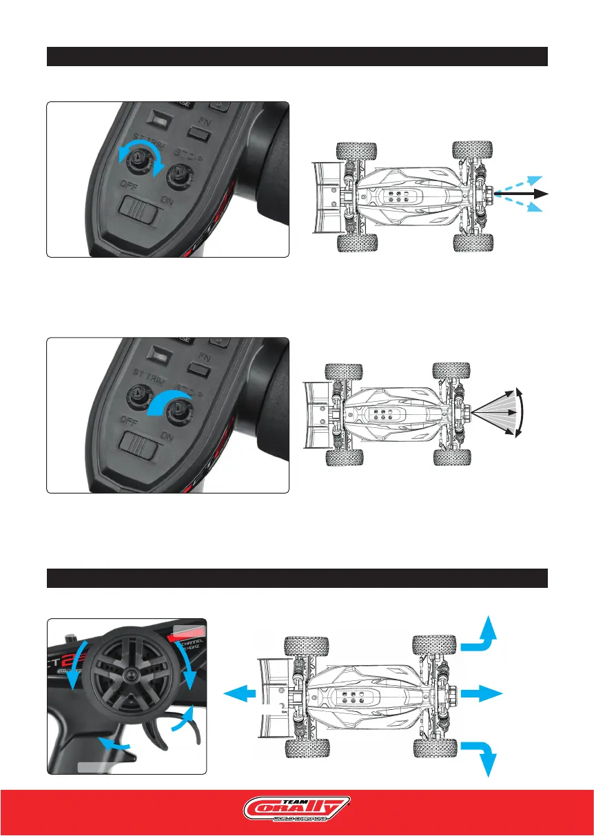 Le trim de direction permet d’ajuster le réglage de la direction afin que la voiture se déplace en ligne droite sans utiliser le