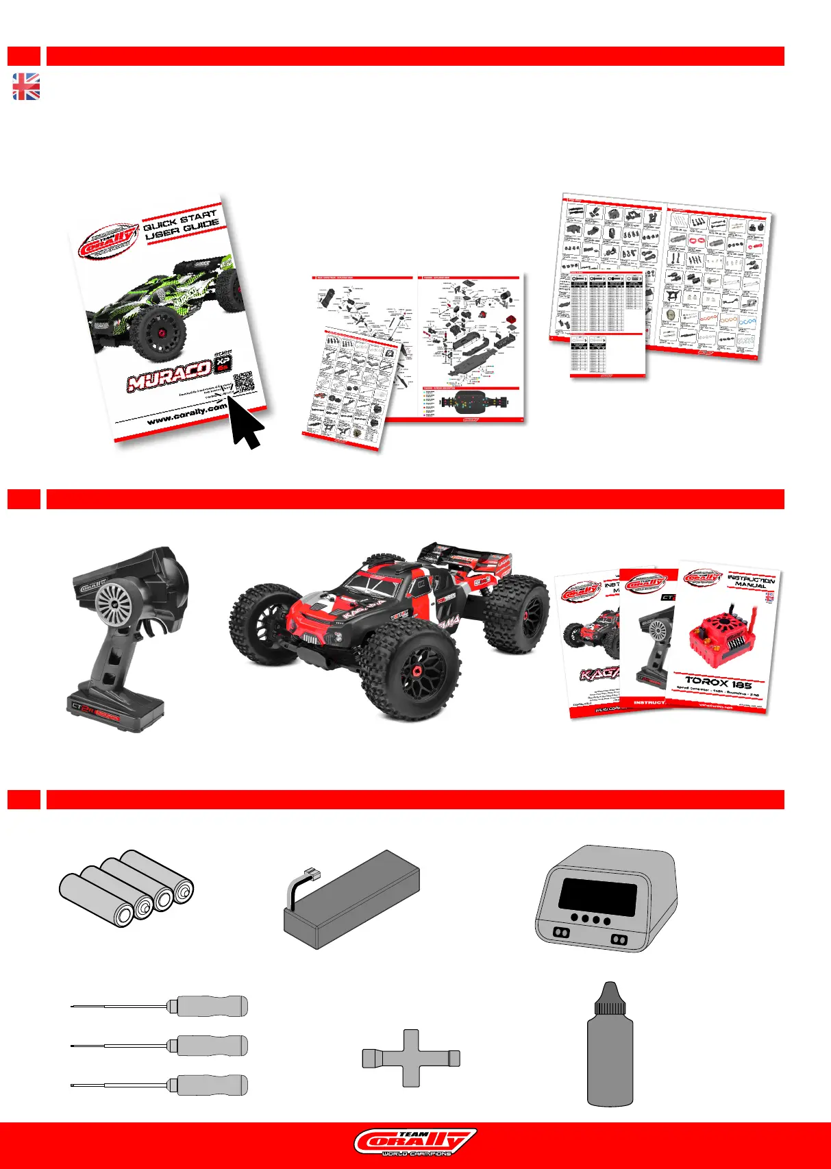 Téléchargez le guide de démarrage rapide en Français sur le site • Laden Sie die Kurzanleitung auf Deutsch von der Website herunter • Download de Nederlandse snelstartgids op www.corally.com