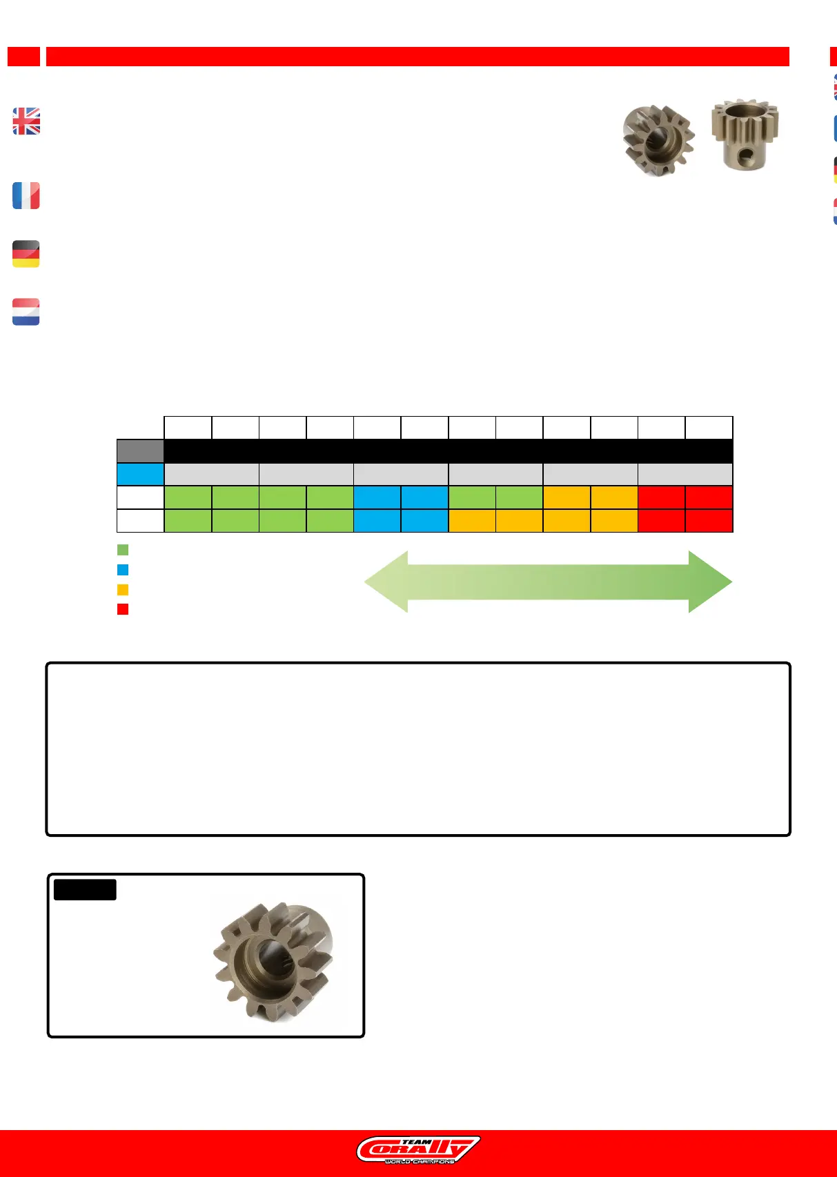 for vibration-free operation. Each pinion is marked with the tooth number for easy and quick identification. Fits all cars with MOD1
